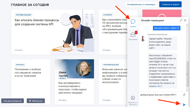 Если готового материала будет недостаточно, то вы и сотрудники сможете задать любой персональный запрос в экспертную поддержку: